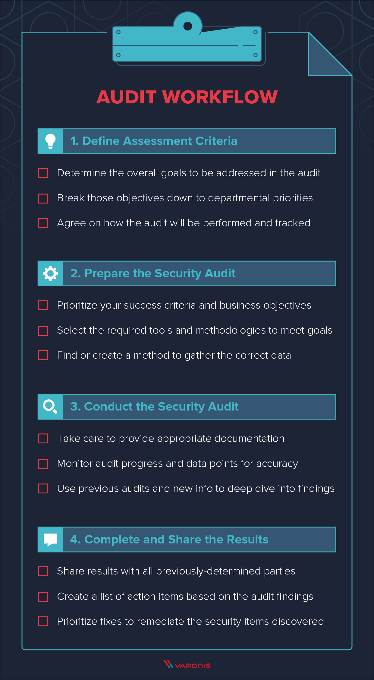 A security audit is only as complete as it’s early definition. Determine the overall objectives the company needs to address in the audit, and then break those down to departmental priorities.