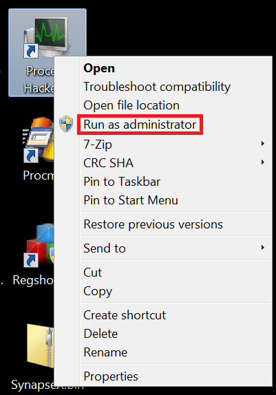Schauen Sie zuerst nach, ob die Malware auf Ihrem Gerät ausgeführt wird, indem Sie den Task-Manager öffnen. Ich empfehle jedoch, Process Hacker zu verwenden – eines meiner bevorzugten Tools für die Analyse von Malware. Klicken Sie, sobald Sie es heruntergeladen haben, mit der rechten Maustaste auf das Symbol auf dem Desktop und wählen Sie „Als Administrator ausführen“ aus.