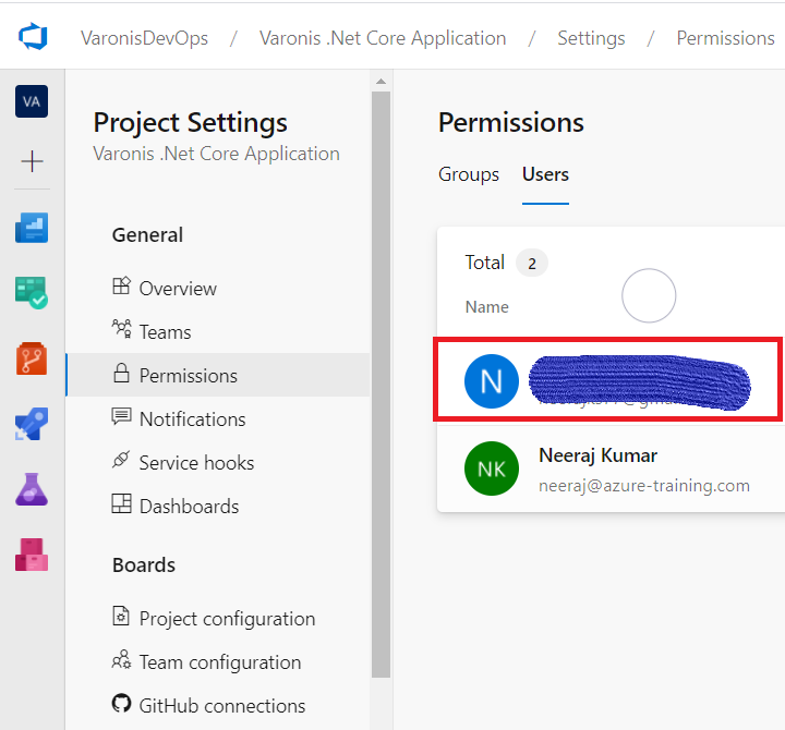 - Klicken Sie im Menü auf der linken Seite unter „Allgemein“ auf den Link Berechtigungen und dann auf „Benutzer“.