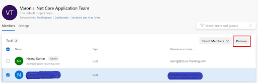 - Um ein Teammitglied aus dem Team zu entfernen, wählen Sie einen Benutzer aus und klicken Sie dann auf die Schaltfläche Entfernen.