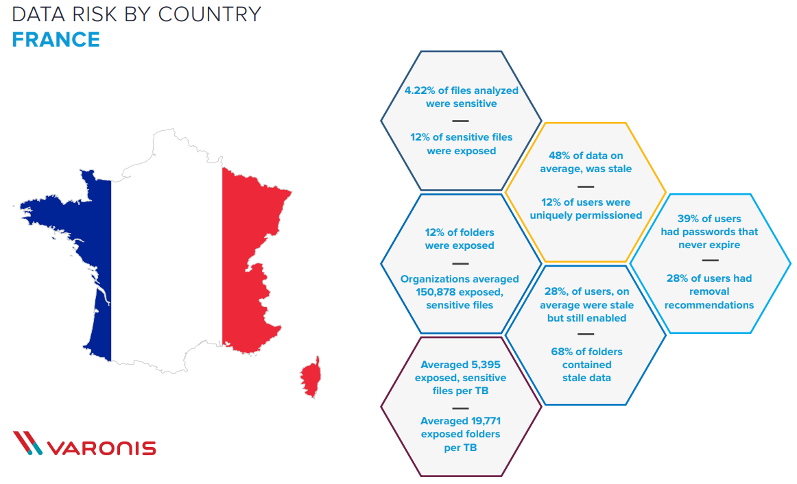 - 48% des données en moyenne se sont révélées obsolètes. 12 % des utilisateurs avaient une autorisation unique