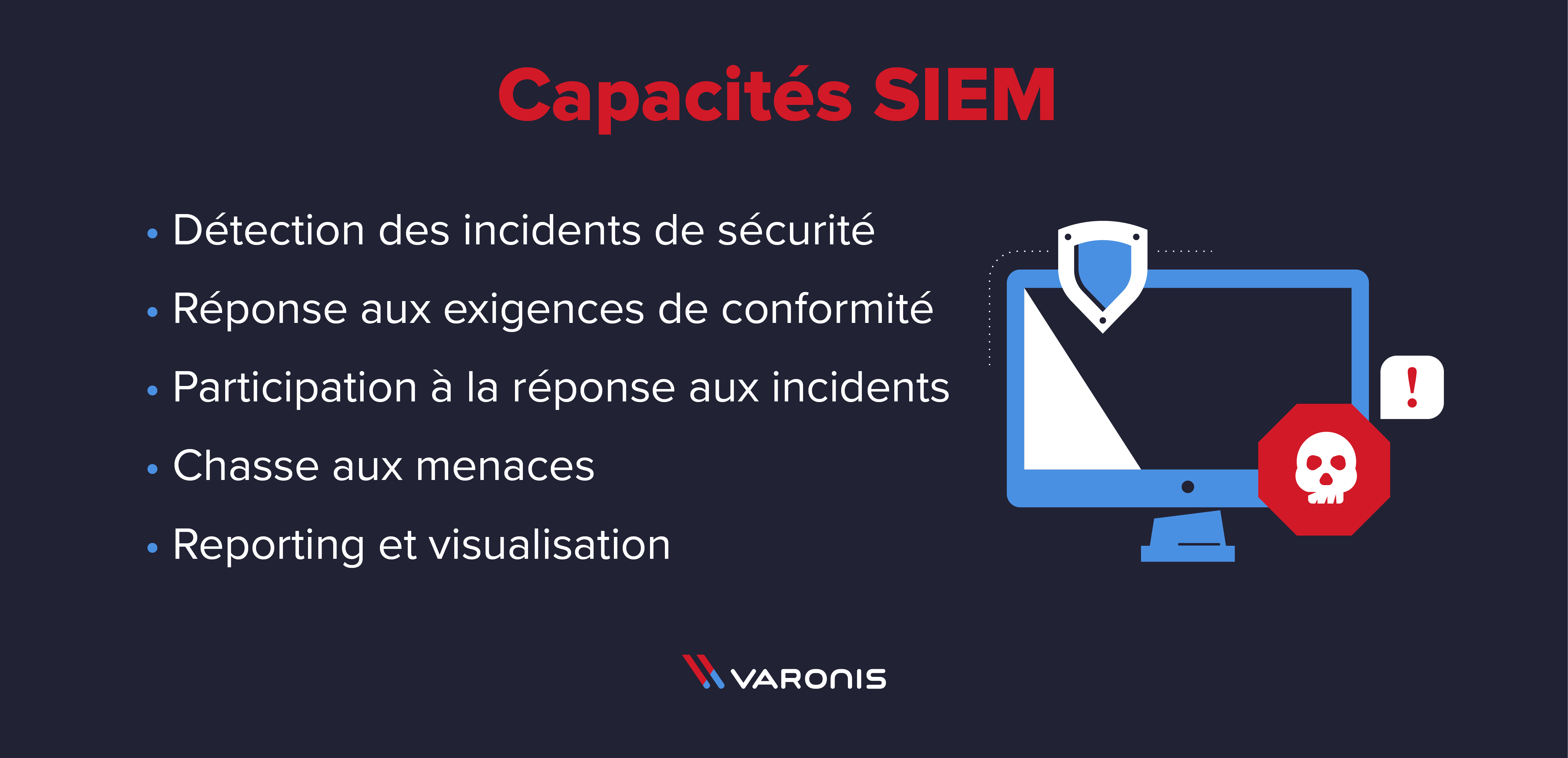 Les outils SIEM recueillent, corrèlent et analysent des fichiers journaux issus de périphériques, d’applications et de terminaux. En fonction des informations collectées, la SIEM peut offrir de nombreuses fonctionnalités, dont les suivantes :