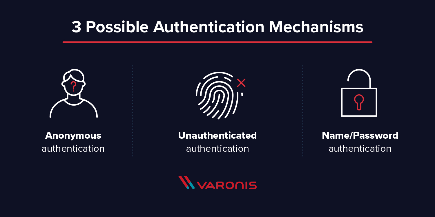 - Name/Password authentication: Grants access to the server based on the credentials supplied – simple user/pass authentication is not secure and is not suitable for authentication without confidentiality protection.